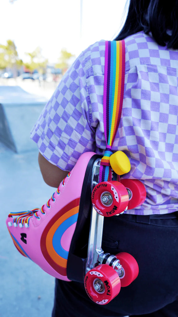 The Moxi Skate Leash allows you to carry your skates on every adventure. Perfect for keeping your hands free and traveling with ease. Simply strap each end to your skates and throw 'em over your shoulder!