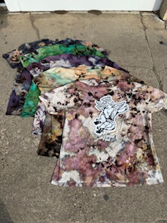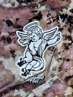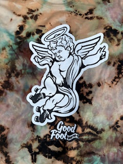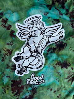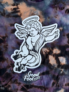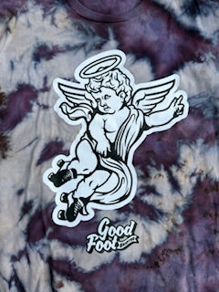 All new cherub tees are handmade reverse ice dyed in house by Good Foot Skates! Every tee will be unique do to the nature of the dying process.